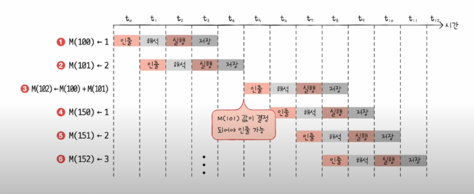 CPU는 같은 단계가 겹치지만 않는다면 CPU는 각 단계를 동시에 실행할 수 있다! 즉 병렬 처리가 가능하다.
