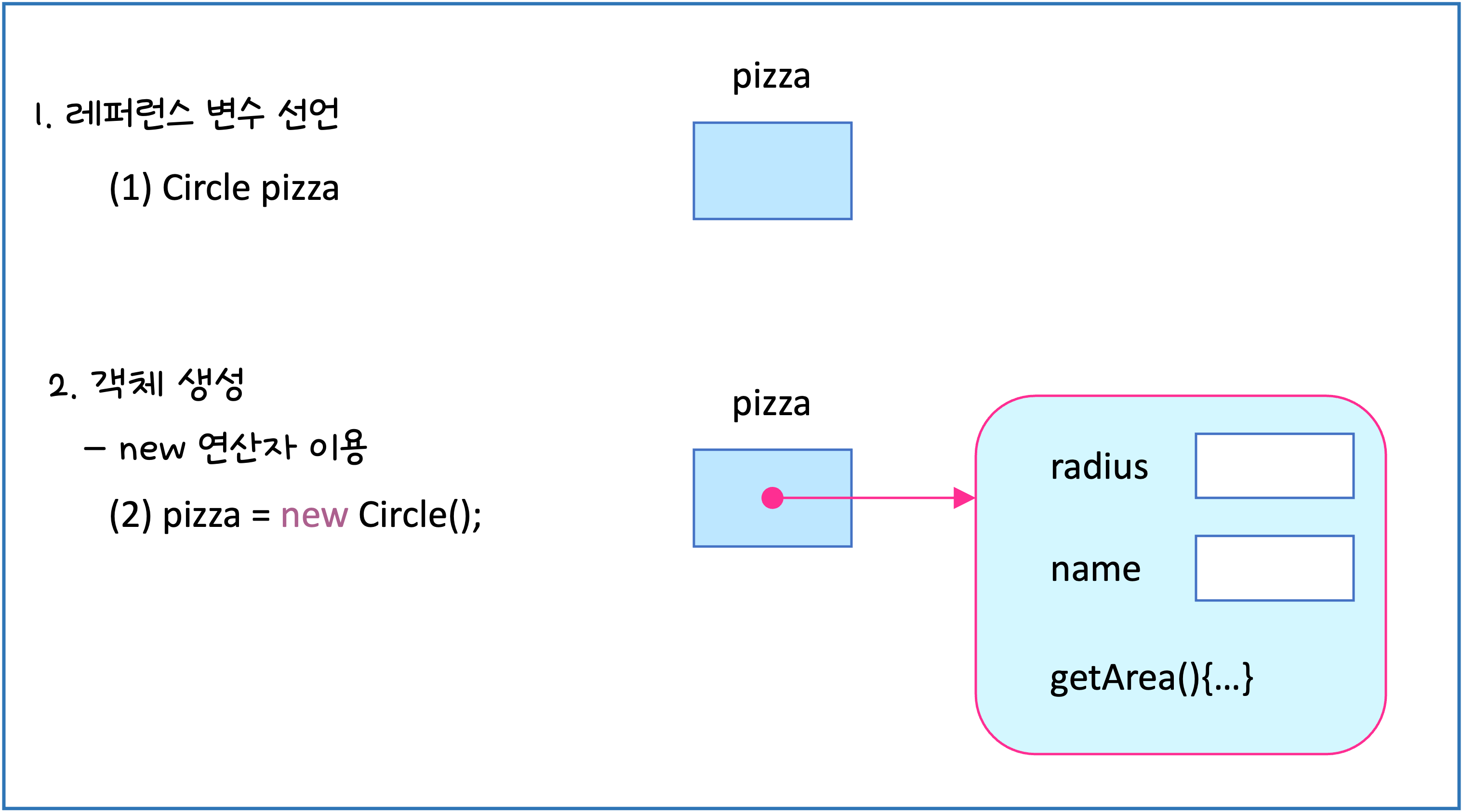 - 객체 : 클래스의 모양대로 생성된 실체(instance)