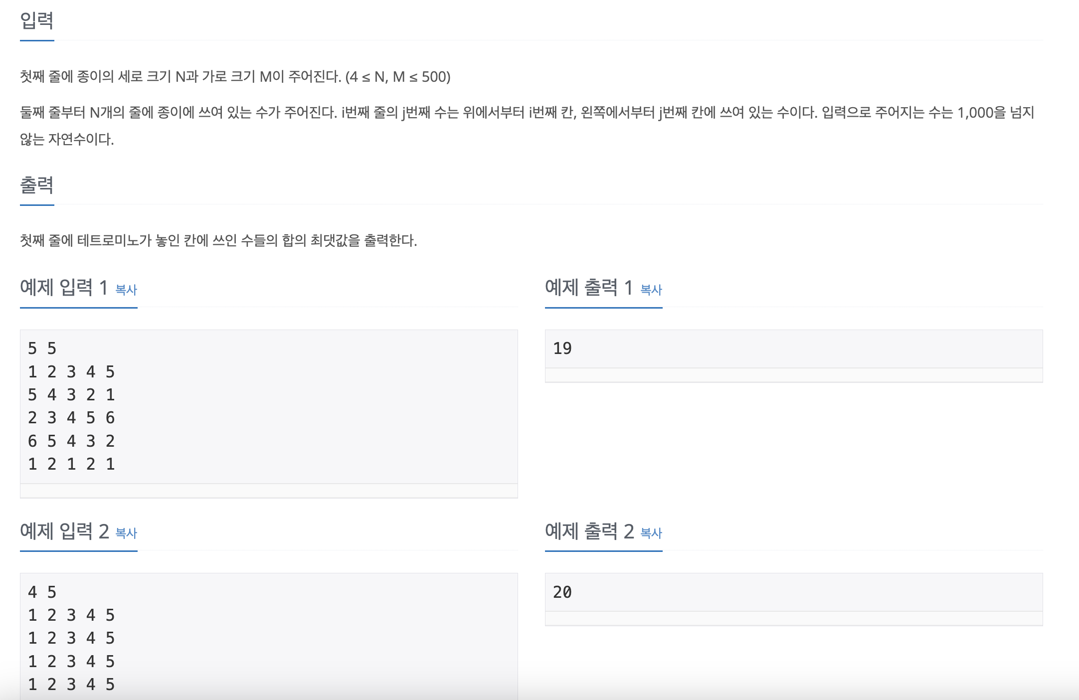 - 주어진 테트로미노를 대칭, 회전 시켜도 된다.