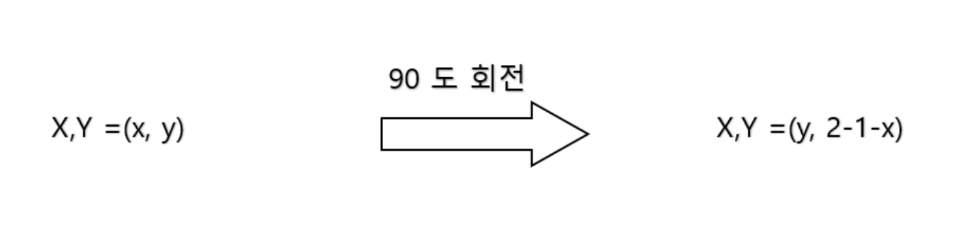 회전에 따른 규칙을 찾아 이용하고자 했는데, 도저히 규칙을 찾을 수가 없었다! 그래서 우선 풀고봐야하니