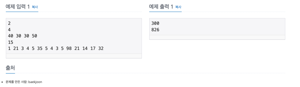 count를 함께 관리 해줘야 되어서 코드가 복잡하지만 결국은 2개를 `nums` 에서 빼내어 `result`에 2개의 사이즈를 더한 후, 합쳐친 파일의 크기를 삽입한다. 이를 파일 1개만 남을 때까지 반복하고 결과로 `result`를 출력한다.