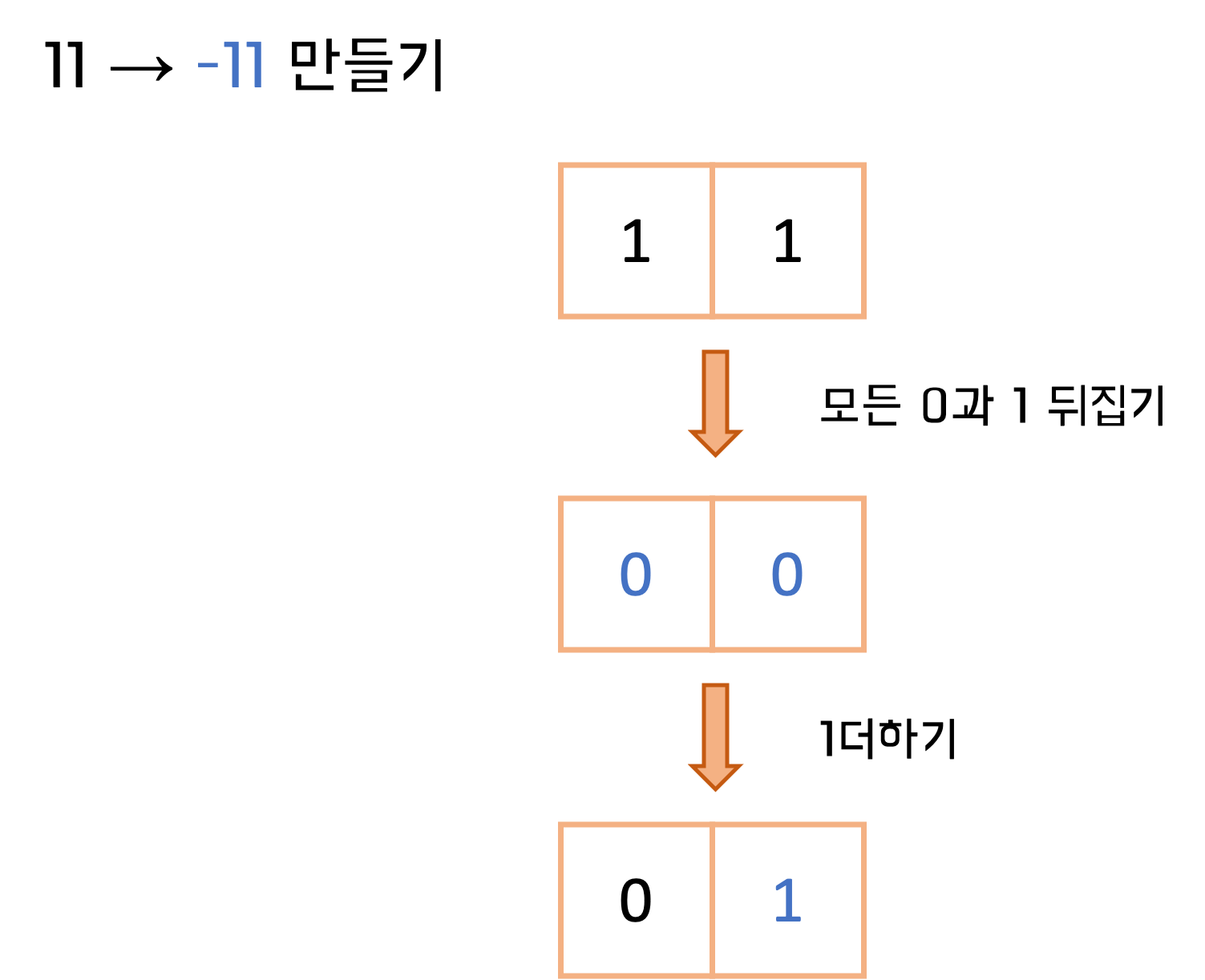 - 쉬운 방법 : 모든 0과 1을 뒤집고, 1더한 값